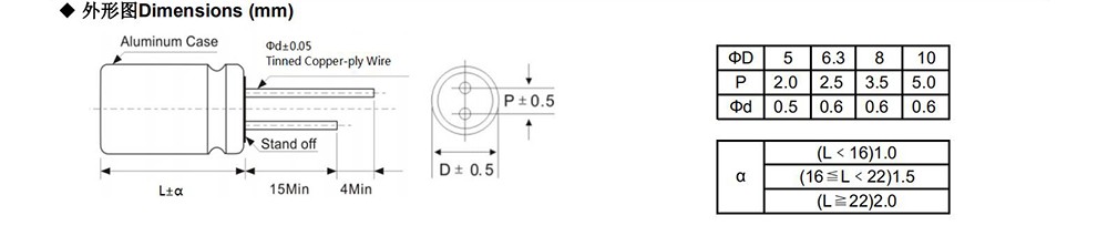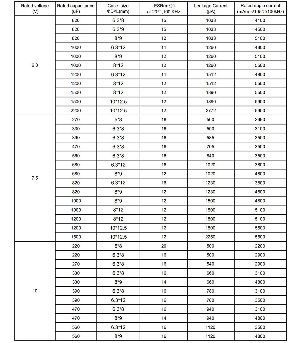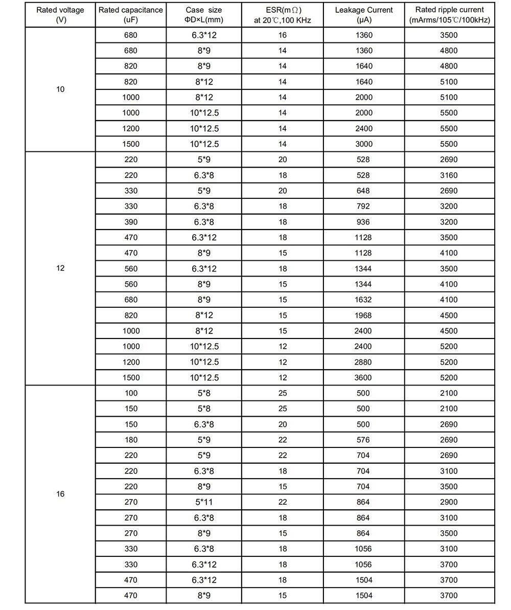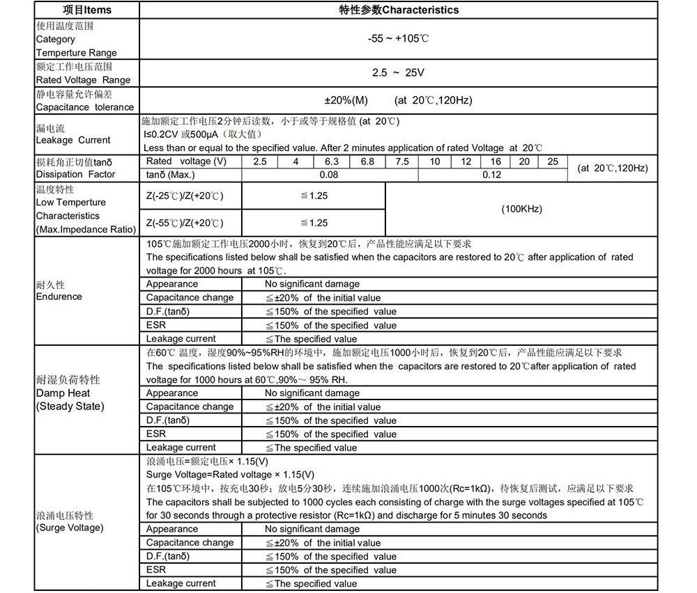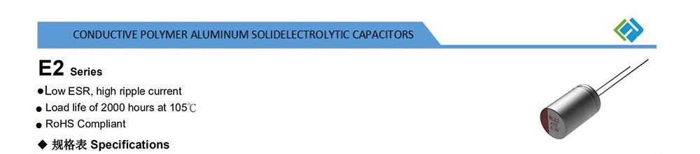 ● Low ESR, high ripple current ● Load life of 2000 hours at 105℃ ● RoHS Compliant